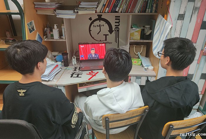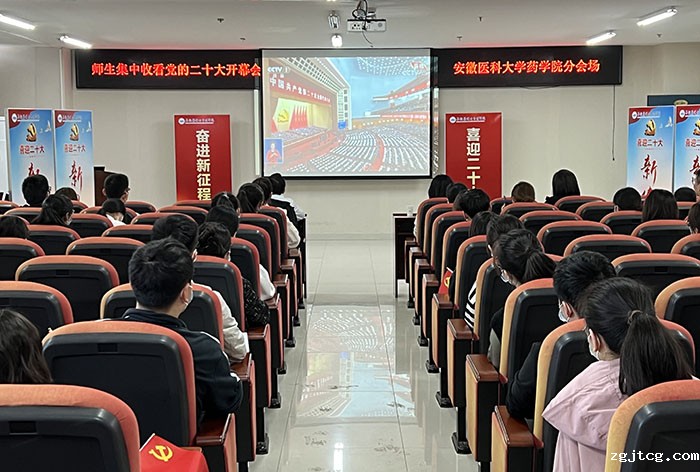 开幕会当天,药学院大屏幕前、各个会议室、办公室、学生宿舍,师生们围坐在一起,共同见证这一历史时刻,感受着团结、和谐、奋进的时代脉动,“喜迎二十大永远跟党走”“喜迎二十大奋进新征程”的宣传图画和展板在学院里格外醒目。