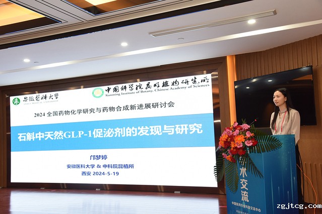 2024全国药物化学研究与药物合成新进展研讨会于5月17-19日在西安召开,我院青年教师邝梦婷应邀在会上开展题为《石斛中天然GLP-1促泌剂的发现与研究》的学术报告。