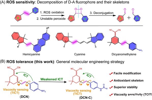 该研究成功合成了一种耐受高水平ROS且靶向线粒体的荧光探针DCN-C,并成功应用于精确监测线粒体中的粘度变化。这一分子设计克服了传统荧光探针在粘度检测中深受ROS干扰的缺点,显著提高分析结果的准确性与信号的真实性。