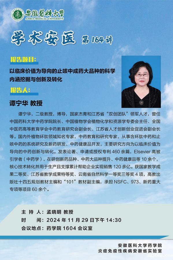 学术报告:2024.11.29 中国药科大学谭宁华教授学术报告会