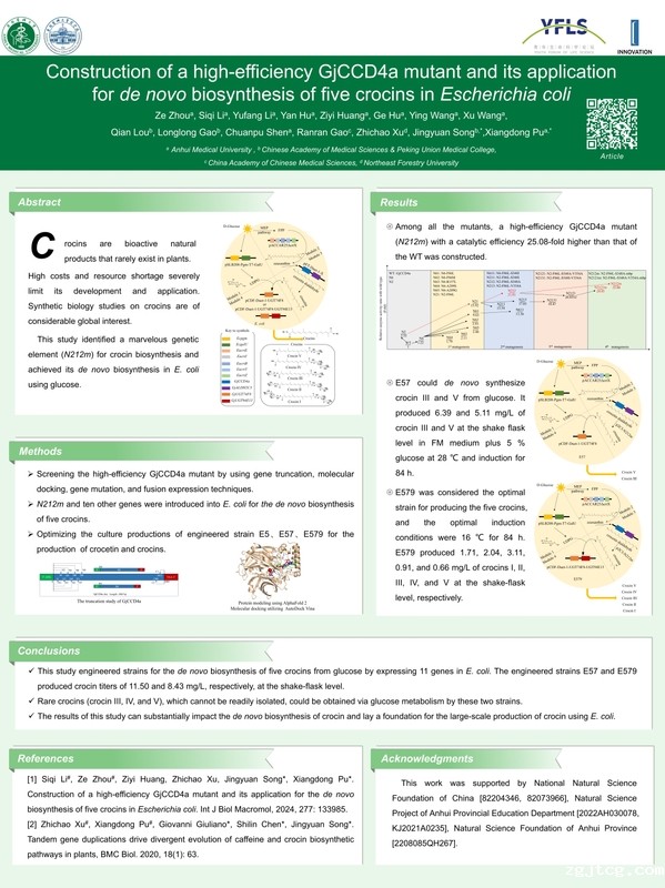 2024年09月20日至22日,由中国科学院青年创新促进协会主办的第六届青年生命科学论坛在湖南省长沙市召开。我院青年教师代表浦香东副教授做了题为《Construction of a high-efficiency GjCCD4a mutant and its application for de novo biosynthesis of five crocins in Escherichia coli》的报告。