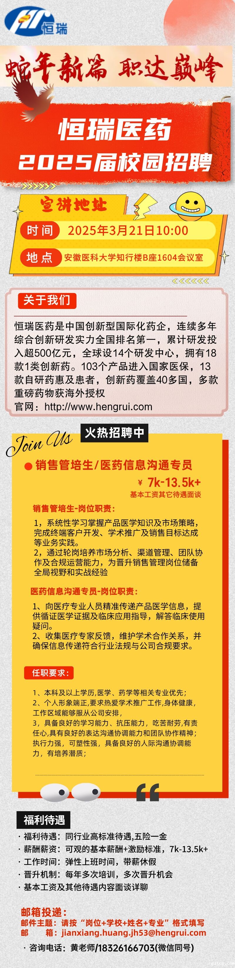 就业信息|恒瑞医药2025届校园招聘宣讲会