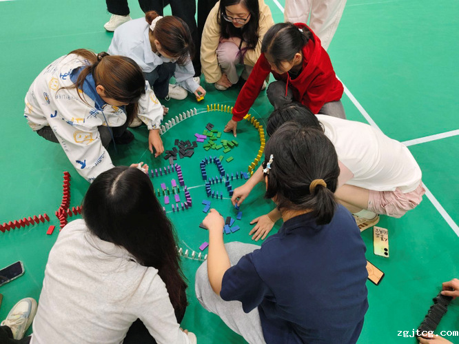 “多米诺骨牌推倒的不仅是障碍,更是埋藏已久的心理压力”。学院首届多米诺骨牌大赛现场,来自校本部与新校区的8支队伍、两百多名学生打破年级和专业的界限,展开创意与专注力的角逐。赛场上,同学们屏息凝神,团结协作,将专业特色和心理元素融入骨牌设计,现场此起彼伏的骨牌倾倒声与欢呼声、惋惜声交织成独特的心理疗愈交响曲,同学们在指尖与骨牌的共舞中释放压力,诠释团队协作的魅力。
