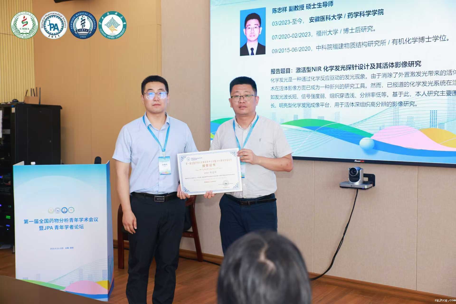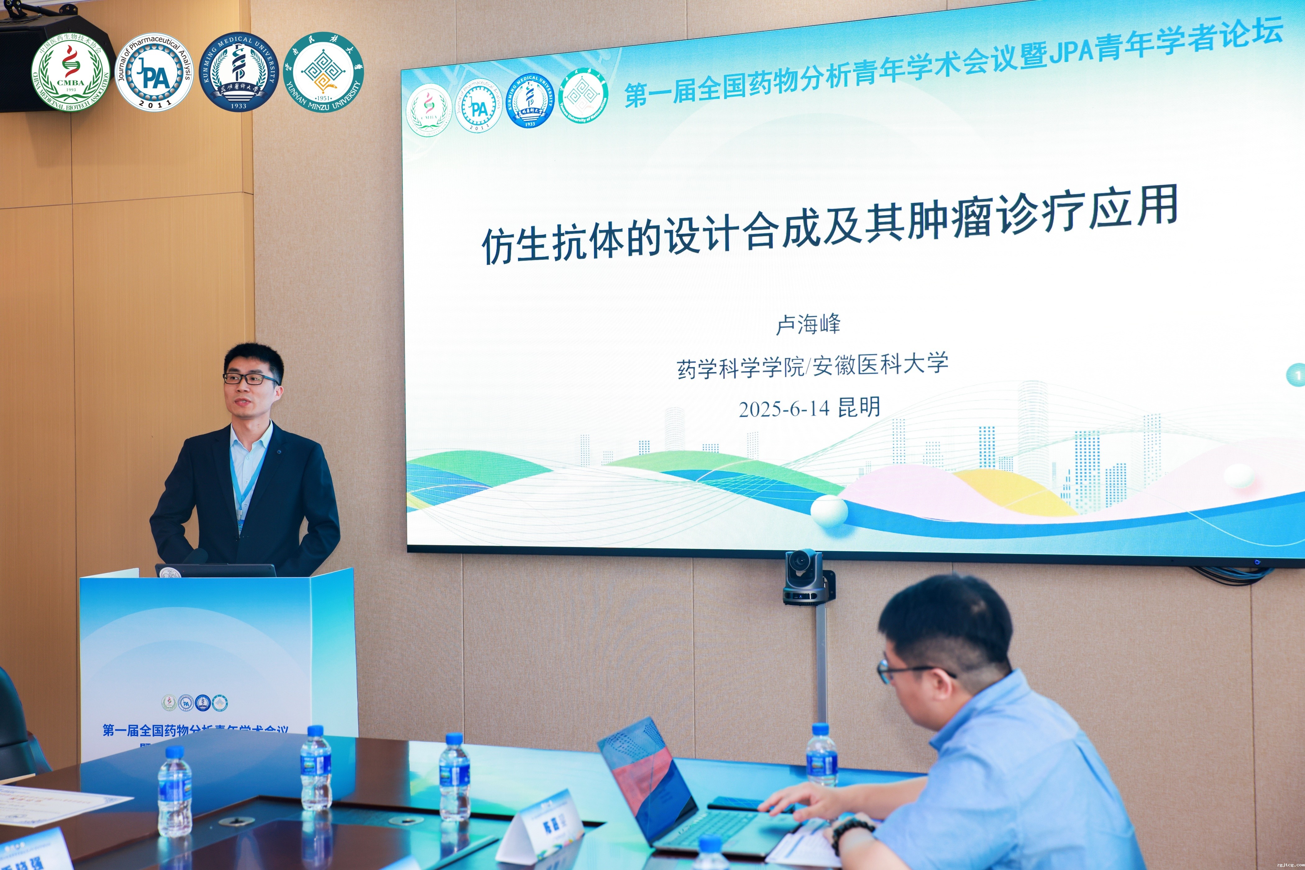 由中国医药生物技术协会药物分析技术分会、Journal of Pharmaceutical Analysis(JPA)联合主办的2025年第一届全国药物分析青年学术会议暨JPA青年学者论坛于6月13-15日在云南省昆明市召开。我院青年教师陈忠祥,卢海峰应邀在会上分别做《激活型NIR化学发光探针设计及其活体影像研究》和《仿生抗体的设计合成及其肿瘤诊疗应用》的青年报告。