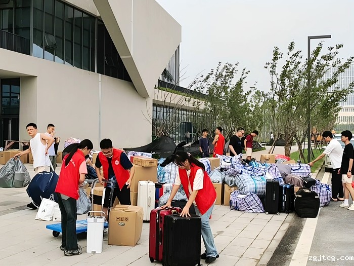 搬迁期间,数十名学生志愿者成为一道靓丽的风景,他们活跃在搬运一线,身穿红色马甲早早到达指定位置,协助同学搬运行李、指引路线、收拿手推车,以热情周到的服务保障搬迁顺利进行。在辅导员老师的指导下,学生们按照既定方案有序打包、搬运、登车,自觉遵守搬迁秩序,互相帮助,展现了良好的集体意识。