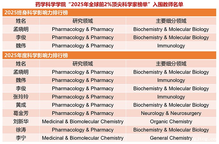 榜单分为“终身科学影响力排行榜(Career-long Impact)”和“年度科学影响力排行榜(Single-year Impact)”两大部分,学院孟晓明、李俊、魏伟3位教授入选“终身科学影响力榜单”,较2024年增加1位;3位教授还与张玲玲、黄成、葛金芳、刘新华、徐涛、李宁等6位教授入选“年度科学影响力榜单”,较2024年增加2位。
